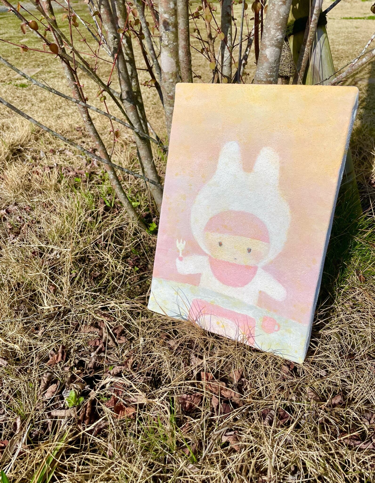 はらぺこのうさぎの子供がまんまを待っています。